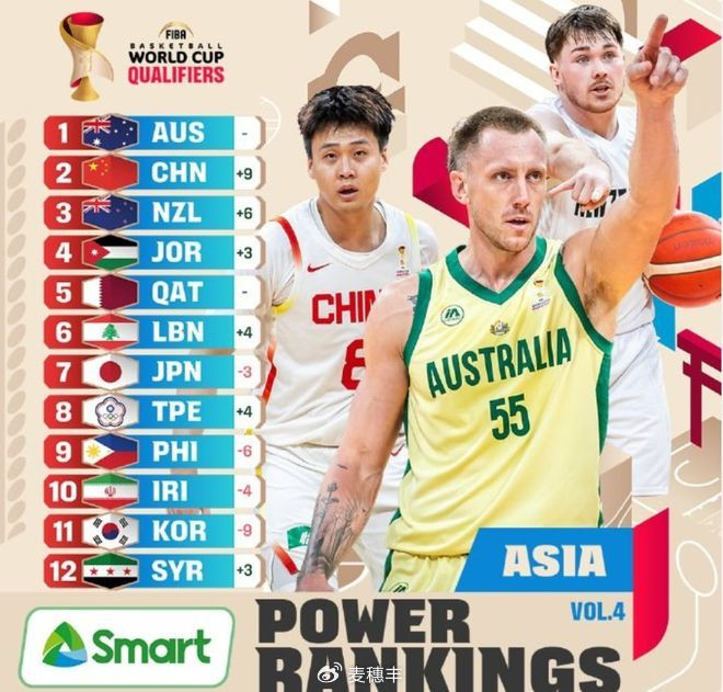 一个窗口期赢下两场胜利,中国男篮的排名飙升9位,直接冲到了第2位,也是令人惊讶。值得一提的是,韩国男篮原本在榜单的第2位,但他们在第二个窗口期里连续输给日本男篮和中国台北男篮,于是排名跌了9位,排在第11位,刚好跟中国男篮互换。